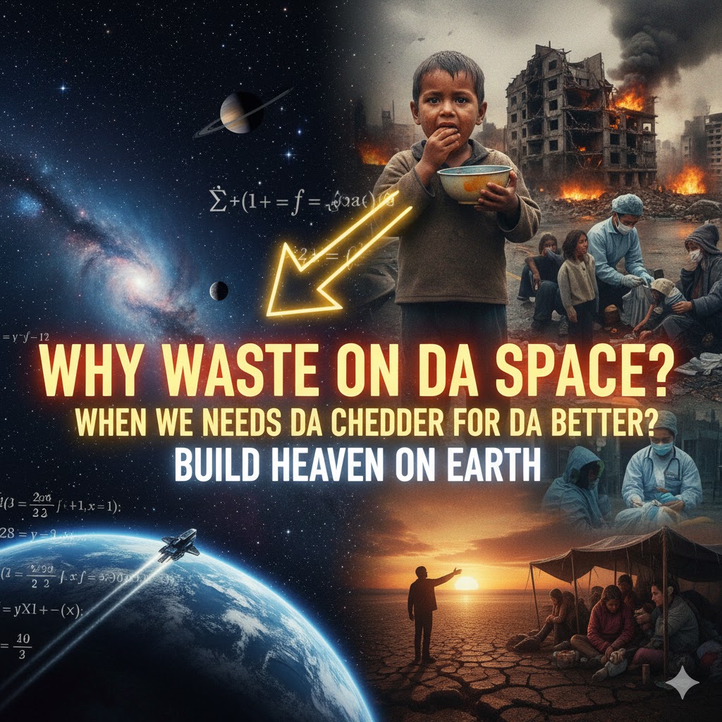 WHY WASTE ON DA SPACE… WHEN WE NEEDS DA CHEDDER FOR DA BETTER? 🤣 It’s an incredibly energetic and thought-provoking argument, full of raw passion about where humanity’s focus and